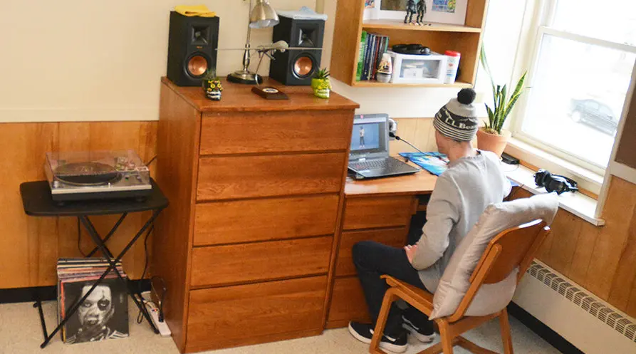 - Average furniture in singles includes: 1 bed, 1 dresser, 1 closet, 1 desk and chair,